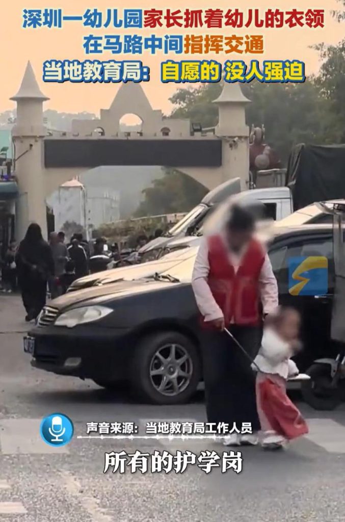学校的护学岗,一定要家长去做吗? 2025-12-312025-12-31 作者 恰飞 如果你家里有小孩,相信都曾经站在学校周边的各个交通路口值班站岗过吧? 今天看到一则新闻。广东深圳,一位家长到幼儿园去接孩子,可经过门口时,却发现另一位家长抓着幼儿的衣领站在路中间指挥交通,而这一幕也引起了不小的争议,教育局回应:所有护学岗都是以自愿为原则,不允许家长强制参加。 我们也“自愿”站在路口执勤过,而且得先到校门口签到,拿马甲红旗,走到指定的路口后,还得拍照发到班级群里,证明确实“自愿”到场执勤了。 这件事情,从上至下,也许在一开始是出于好意,出于对孩子安全的考虑,而做此安排。但是在实际操作中,却给家长们造成了很大的困扰。 家长的烦恼 执勤时间有几个固定时段,一般是早上七点五十到八点半,中午十一点半到十二点,下午一点半到两点,晚上四点半到五点,或者五点半到六点。全国各地略有差异,但是基本就这几个时间段。 这几个时间段的特点很明显,学校和家长的时间冲突。正是家长急着上班的时候,也是孩子们上学的时间,那边家长还没下班的时候,这边孩子们却放学了。 不是每个家长都有条件按时到岗。双职工家庭、工作时间不自由的、家里还有更小孩子的……这些现实困难往往被一句“大家克服一下”轻轻带过。像深圳那位带着幼儿指挥交通的家长,很可能就是挤不出其他时间,只能硬着头皮上。 姑且放下“自愿”与“被自愿”的争议,我们一起分析下,安排家长作为护学岗,真的合情合理吗? 学校、老师、家长的权责 首先,我们来捋一捋,在上下学安全保障中,学校、老师、家长各自扮演的角色以及承担的责任。 【学校】 角色:作为教育管理的主体,是安全保障的统筹者与组织者。 责任:制定完善的安全管理制度与应急预案,涵盖上下学时段的安全管理细则;合理规划校园周边交通,设置安全标识、减速设施等;安排安保人员在上下学高峰期于校门口及周边巡逻值守,维护秩序、防范危险;定期开展安全教育活动,提升学生安全意识与自我保护能力。 【老师】 角色:是学校安全管理的执行者与学生安全教育的引导者,在学校与家长之间起到桥梁作用。 责任:在校园内,关注学生上下学前的状态与行为,及时发现并纠正不安全行为;对于低年级学生,组织有序排队离校;通过课堂教育、主题班会等形式,向学生传授上下学安全知识与技能;与家长保持沟通,反馈学生上下学期间的表现与安全问题,共同督促学生养成良好安全习惯。 【家长】 角色:是学生安全的第一责任人,是家庭安全教育的实施者与上下学接送的主要承担者。 责任:教育孩子遵守交通规则,如过马路走斑马线、不闯红灯等;根据孩子年龄和实际情况,选择合适的上下学方式,如亲自接送或安排可靠人员陪同;与学校保持密切沟通,及时了解学校上下学安全要求与注意事项;若孩子自行上下学,要掌握其行程路线与时间,提醒孩子注意安全、避免危险区域。 如上所述,家长是家庭安全教育的实施者与上下学接送的主要承担者,负有教育孩子遵守交通规则,提醒孩子相关注意事项的责任。家长主要承担的是自己孩子的相关安全教育以及提醒的工作,至于其他孩子的安全和提醒工作,也要由家长来承担吗? 随之而来,会面临其他更多的疑问,比如下面两个。 疑问一:如果由家长来负责别人孩子的安全和提醒工作,学校这个教育管理的主体的职责又是什么呢?老师作为安全管理的执行者和引导者,其作用又是什么呢? 疑问二:如果由家长来负责别人孩子的安全和提醒工作,护学岗中,不幸发生了意外,相关责任,又由谁承担?如果护学岗职责是保护是全体孩子的安全,那么责任也是全体家长承担吗?如果也是家长,那么回到前一个疑问,学校和老师的职责,又是什么呢? 其实学校、老师、家长的权责很清晰,在“家长自愿担任护学岗”这件事情上,为什么却有出入呢? 为什么有护学岗? 我妄自揣测,为什么学校需要护学岗这样的岗位。我能想到的直接原因就两个。 第一,安全考虑。 这个原因显而易见。上下学时间,车流人流较多,出于学生安全考虑,如果有人来临时督导交通秩序,确实可以大大提高学生的路上安全。 只是,由家长来担任这个角色,效果会吗?家长有权利督导交通秩序吗?家长有权利督导同是家长的行为吗?家长有足够的安全意识和相关知识,来支撑其担任这个角色吗? 我想,大多数家长都是不称职的。当然,如果只是需要有那么一个人,站在那里,由学生的爷爷奶奶去站着,当然称职了。而实际情况也确实如此,由于工作问题,很多时候,护学岗上站着的就是爷爷奶奶。 第二。执行有问题。 这个是我自己揣测的理由,没有真凭实据,各位看官姑且听之。 如果(注意,我说的是如果)上级要求加强学校周边,学生出行安全,“建议”设立护学岗,疏导上下学时的交通。而各级学校,收到这样的“建议”后,在一人一岗的情况下,这样的岗位,又该由谁去承担呢?毕竟,没钱没补贴,风吹日晒的,老师们要上课,领导们要上班,保安们得在门口站岗,那么由谁来承担呢? 这时候,“家校共育”的理念得用上了。既然“校”有困难,要不,就“家”来吧! 我知道有一些学校是不需要护学岗的,也知道有一些学校的护学岗是交警,是保安。 上述猜测,仅仅只是我的猜测。我相信大多是学校和老师都是真正秉持教书育人的初心在工作,但是迫